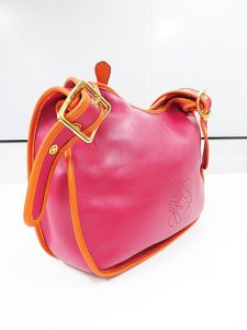 須賀質店池袋営業所で、ロエベ、ソフィア、ショルダーバッグを買取いたしました。レザー素材で、全体は濃い赤色でフチがオレンジなっていてかなり目を引く色味のお品物です。ロエベはアマソナというモデルのバッグが一際人気となっていますが、メンズのビジネスバッグや、今回お持ちいただいたショルダーバッグ等の商品も人気のある高級ブランドです。