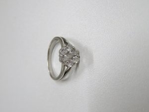 須賀質店池袋営業所でノンブランドのリングを5万3千円で買い取りました。こちらのリングは花柄のように大きめのダイヤモンドがセッティングされた人気のあるデザインです。