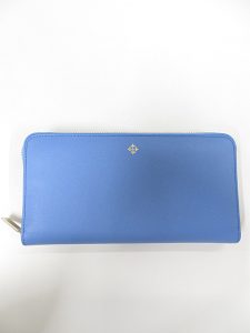 須賀質店渋谷営業所で、パテックフィリップ、ラウンドファスナー長財布を買取いたしました。鮮やかな水色をしたレザー素材のお品物で、人気のあるラウンドファスナーのお品物です。