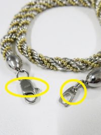 でもこのネックレスは、金もプラチナも全く含まれていない偽物です。金色の部分はメッキ製、銀色の部分はプラチナでなく銀製品だと思います。