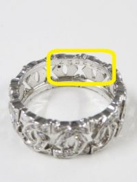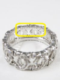 一流ブランドメーカーのブランドジュエリーは、一般的なジュエリーよりもはるかに高額で売買されるので、偽物やコピー商品が出回る確率は高くなってきます。画像のリングはCARTIERの刻印が有りますがCARTIERのリングではありません(撮影の都合で上下が反対になっています)