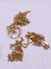 2019年10月28日、須賀質店五反田本店で、18金のネックレスを3本買取しました。18金ネックレス3本とはいえ、それぞれのネックレスは細いものだったので、3本合わせて9.9g 41,600円の買取となりました。今回買取したネックレスは、すでに使わなくなってかなり時間がたった18金のネックレスだったようです。