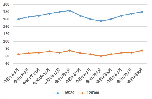 新型コロナウイルス蔓延前の令和1年8月から令和2年1月頃までは、相場は順調に伸びていました。