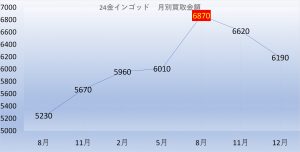 グラフに掲載されている金額は、それぞれの月の最初の営業日に須賀質店が提示していたインゴットの買取金額です。