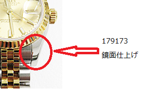時計の本体の四隅、ブレスレットとの接続部分をラグと言います。ここの金属の仕上げ方が変更になっています。69173と79173は艶消しですが、179173はここが鏡面仕上げになっているのが特徴です。