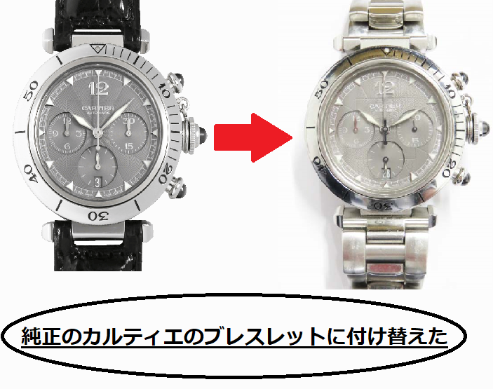 カルティエ パシャ38mmクロノグラフ2004年クリスマス限定モデルの時計は、革ベルトタイプしか発売されていないはずなので、今回のような純正のブレスレットに付け替えた訳アリの状態で買取にお持ちいただいた場合、査定にはどのような影響があるのでしょうか?