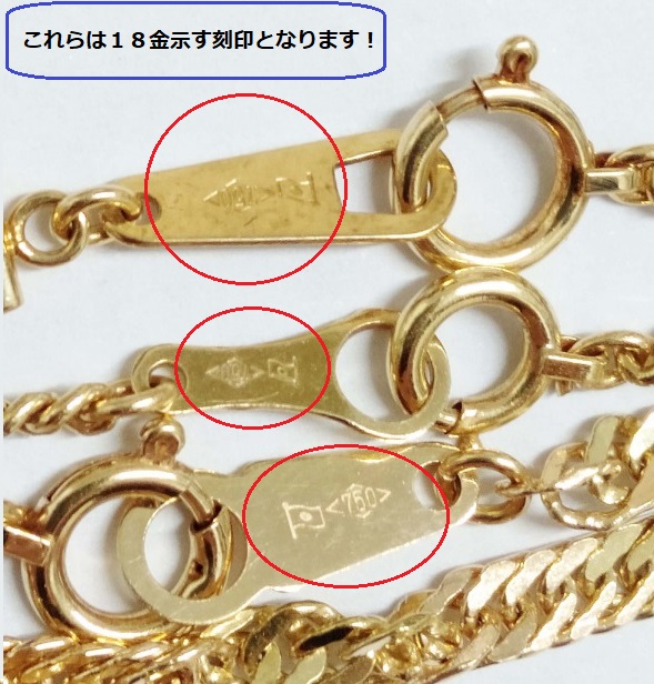 ネックレス3本とも、金具部分に18金を示す750の刻印が入っていました。