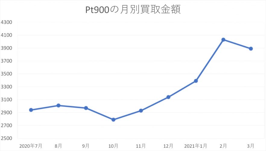 上のグラフは須賀質店のPt900の買取金額を月別に並べたグラフです。