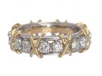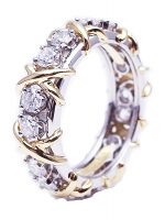 須賀質店五反田本店でティファニーのジーンシュランバーゼ 16ストーンリングを320,000円で買取いたしました。プラチナ950と18金イエローゴールドのリングにダイヤモンドが16ツブ使われているゴージャスな指輪で、デザイナーがジーンシュランバーゼさんという方のジュエリーです。