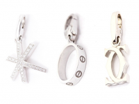 カルティエはネックレスやブレスレットに付けるトップ部分 チャームを別に購入することが出来ます。カルティエのロゴマークであるCを組み合わせた2Cモチーフや、3種類のゴールドを組み合わせた3連リング トリニティ、馬をあしらったブロッキングホース、像をあしらったキャンディチャームエレファントなど、様々なチャームが販売されています。