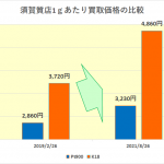 下のグラフは2019年2月26日と2021年8月26日の買取相場を比較しています。2年半前と比べて、