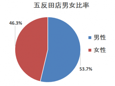須賀質店五反田本店の、お客様の男女比率になります。男性のお客様の比率が少し高くなっていますが、年齢層のところで触れたように、質屋を利用されるお客様には経営者の方、自営業の方の比率が多くなっているので、そのために男性のお客様比率が高くなっているのかもしれません。